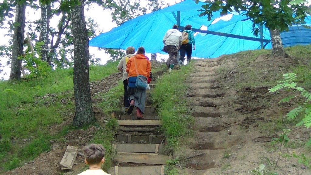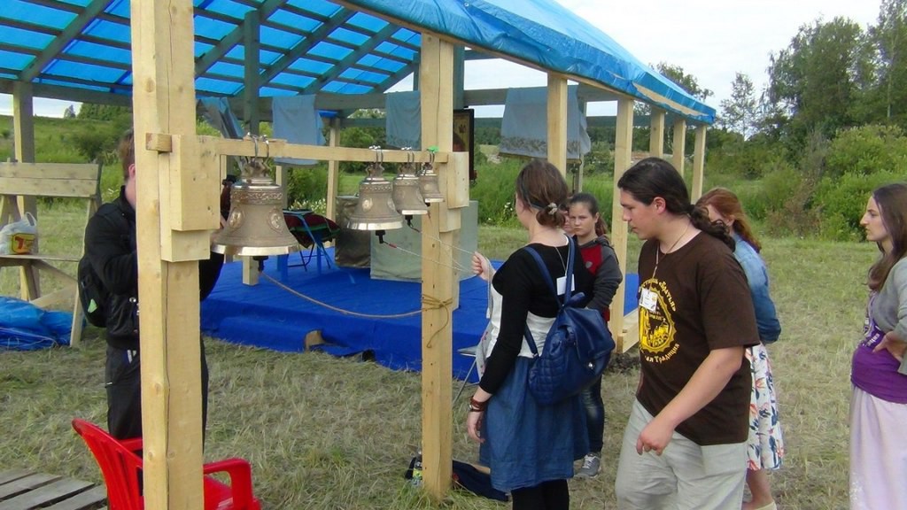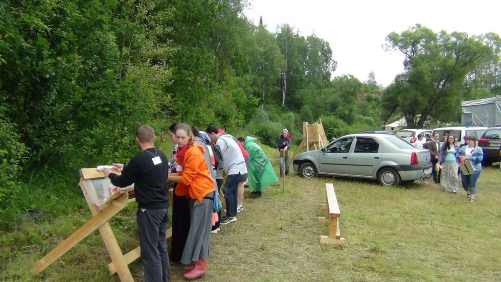 На фестивал су нас, одмах по слетању авиона на аеродром Шереметјево, одвезла кола с возачем што их је обезбедио наш покровитељ. Читав тај први дан фестивала протекао је у подизању шаторског насеља, које се налазило на узвишеном делу пропланка на ивици шуме; у доњем делу, на самој окуци речице Колоче, смештена је сцена, иза које се налази шатор с реквизитима; преко пута ње – наткривен шатор за публику, с леве стране – места за смештај опреме, регистрацију учесника. Са десне стране, између сцене и шаторског насеља налази се од греда направљени пољски храм, наткривен церадом. Иза сцене, у шумарку на брдашцету изнад Колоче, налази се пољска кухиња, мало ниже од ње – туш-кабине.
